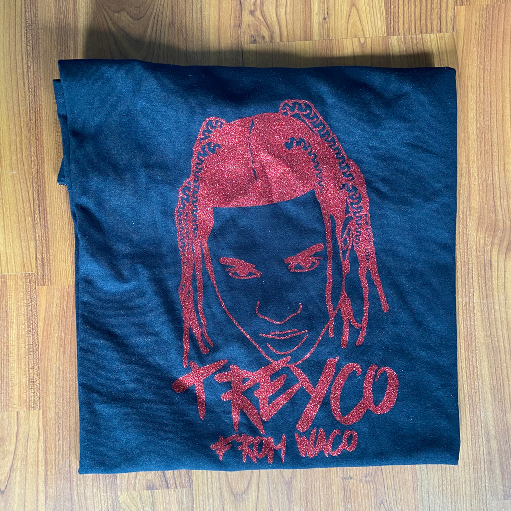 Treyco Red Glitter Mad Face Black Shirt