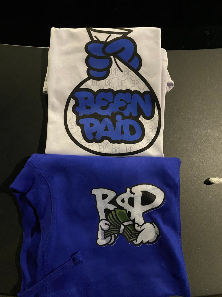 White & Blue Been Paid Short Set